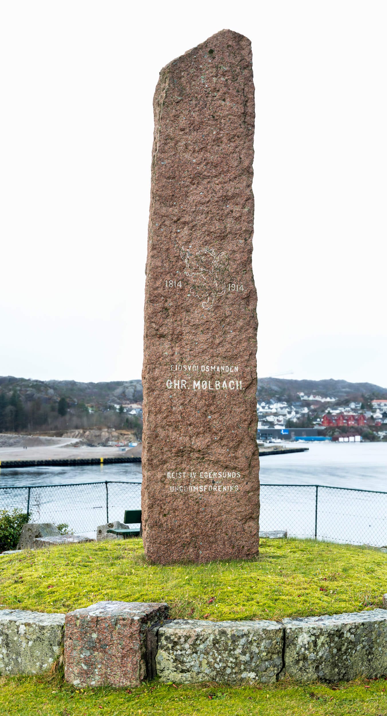 In 1914, the 100th anniversary of the constitution was celebrated all over the country. In Egersund, the Egersund Youth Association thought that honouring the Eidsvoll man Christen Mølbach with a monument would be a worthy way to mark the anniversary. Mølbach was born in Kristiansand, where his father was a merchant. He himself was a deputy magistrate for a time, but then became a merchant in Egersund. In 1814, he was a delegate from Stavanger county to the National Assembly at Eidsvoll. The monument was placed in Fjellparken and unveiled on 17 May 1914. It is part of the story that Christen Mølbach has also been honoured with a street named after him in Egersund, for the 200th anniversary of the constitution.