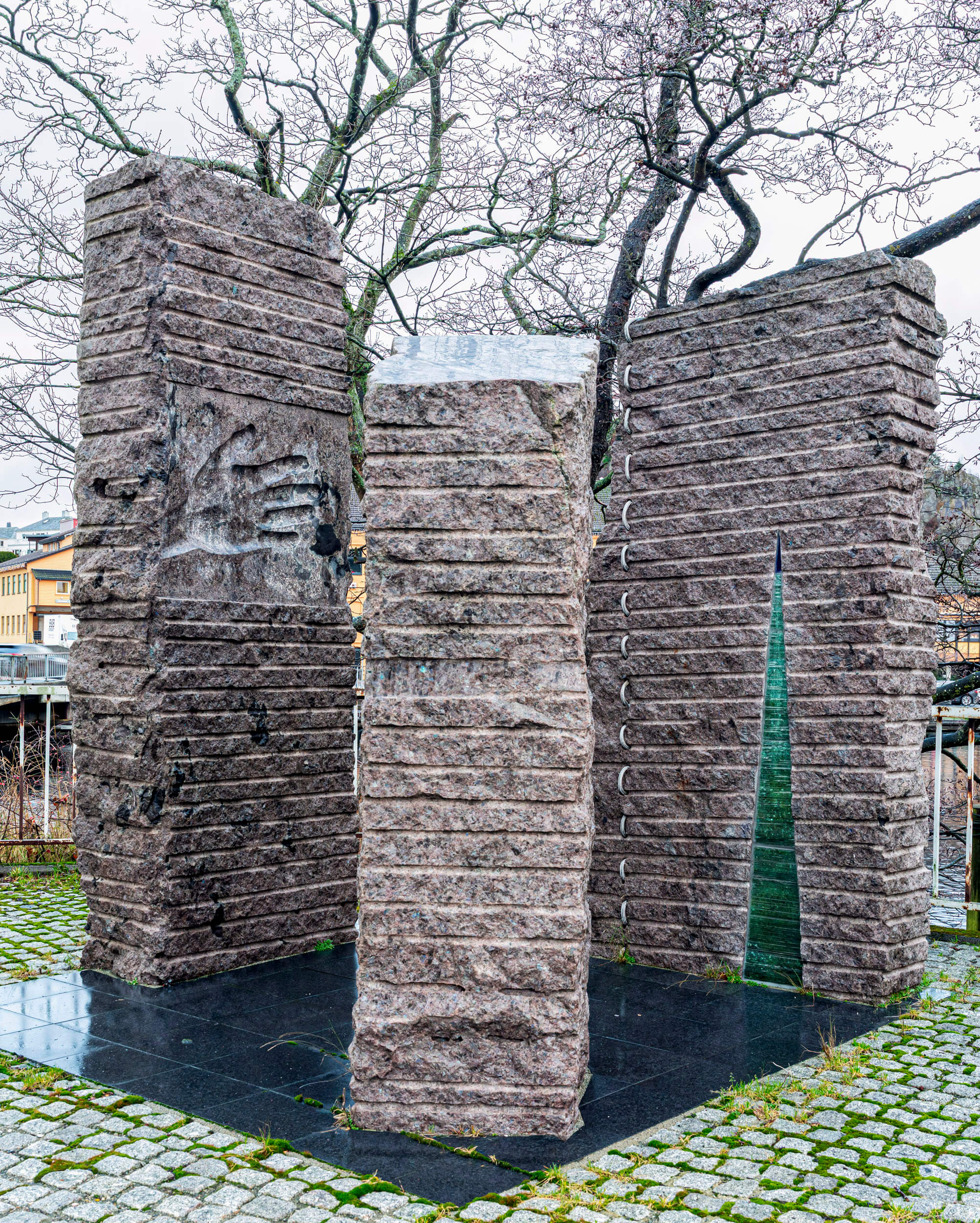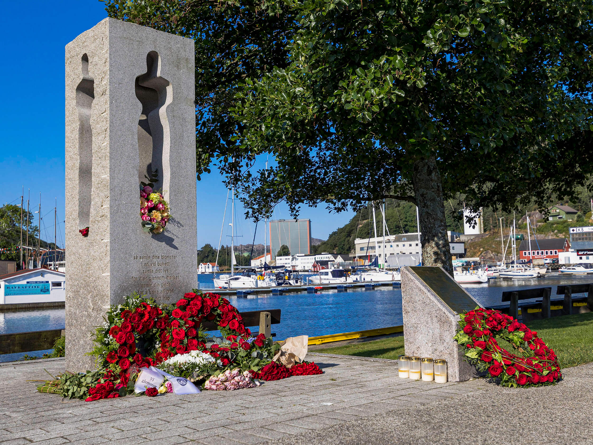 The memorial is a relief that stands in the verge between the car park at Arenes and Torget. The relief was created by Hugo Wathne. It was unveiled by Mayor Marit Myklebust on 8 May 2000. Similar memorials were unveiled on the same day in the other three municipalities.