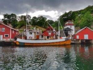 Only a few minutes' walk down from the viewing platform are: The houses under the "Helleren" at the very heart of the fjord. The pit is 10 m deep and 60 m long. The houses are several hundred years old and stand on protected land. The archaeologists have found remains of people who lived here over 6,000 years ago. The houses are open to visitors and it is important that great care and respect for the place is shown.