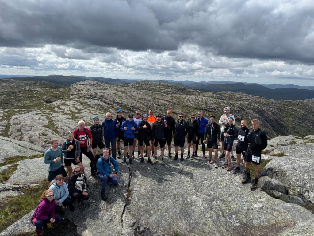With a joint start from Moi Station and finish at Lindtjørnknuten, 731 metres above sea level. 22 kilometres of cycling and 7 kilometres of cross-country running take you past hayfields and cultural monuments, across marshes and magnificent rock formations in a genuine UNESCO Magma Geopark landscape. After almost 30 km and 900 metres of elevation gain, you'll reach the summit cairn and receive life's most deserved hamburger!