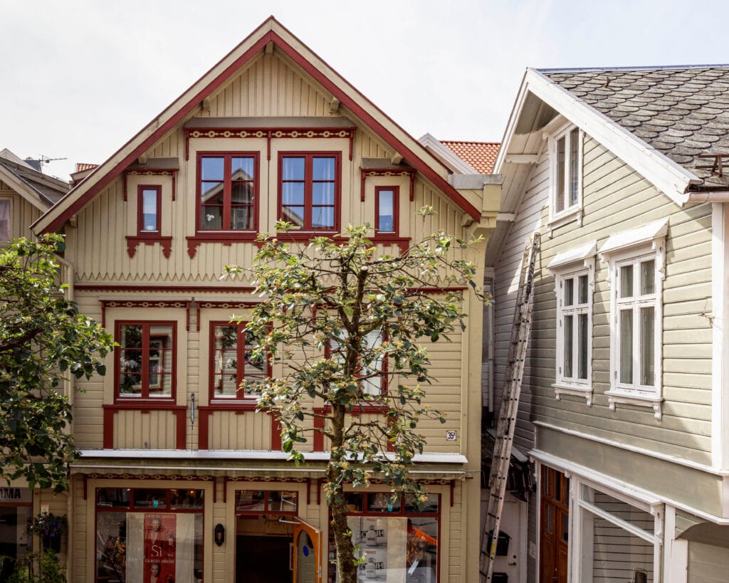 Egersund town has one of the best-preserved wooden buildings in Norway. Large parts of the city area are now regulated as a special antiquarian area. Many fine examples of wooden buildings can be found in Strandgaten, which used to be the town's main street. It was created after a regulation in 1843, when a large fire left the entire building in ashes. During the rebuilding, the outer district got straight streets in an even grid pattern.