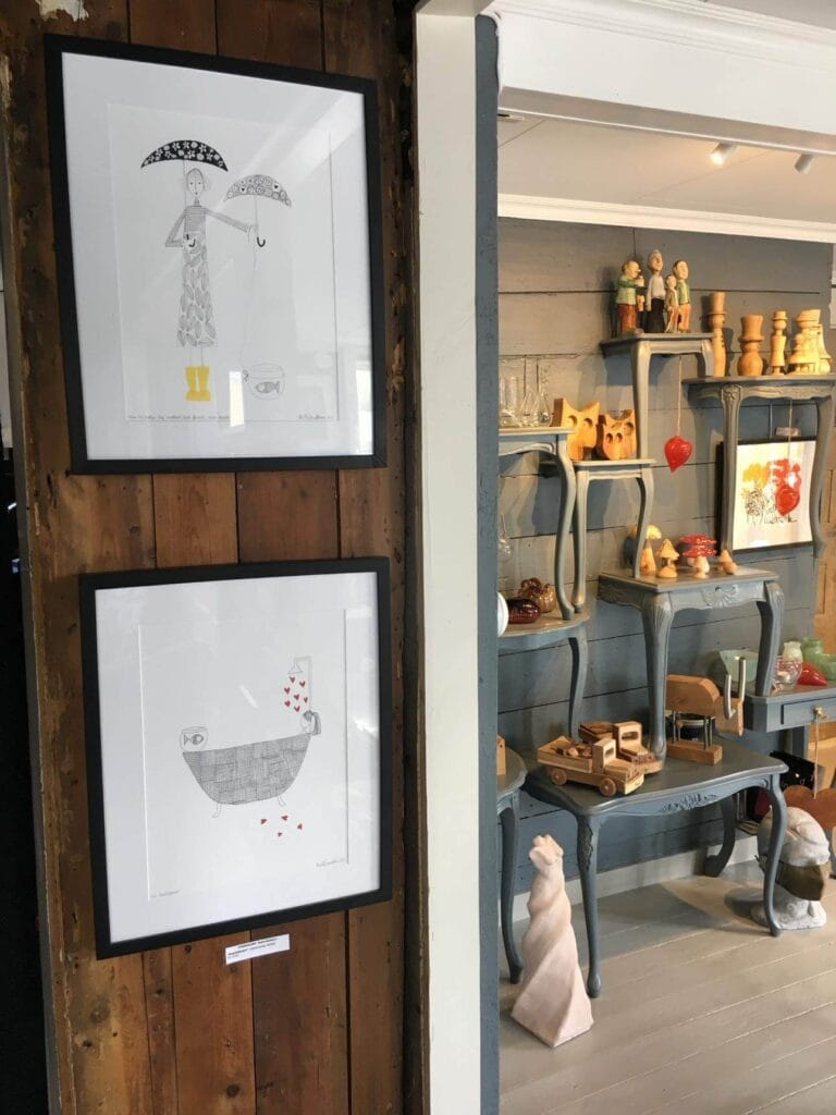 A shop by, with and for art, craft and design. Everything is made by hands that love what they do. Occasionally hosts small events. They sell various materials and equipment for painting etc., and have a cosy sofa corner where everyone is welcome. Here you can enjoy freshly brewed coffee, soft drinks and delicious homemade Italian ice cream. Perhaps you'll find the perfect hostess gift, friend gift, Christmas gift, christening gift or wedding gift? The occasions are many - and the selection large. Welcome to our shop!