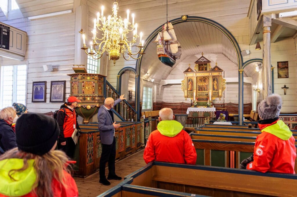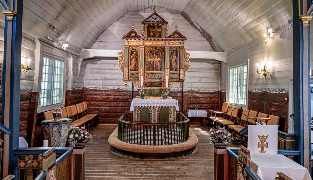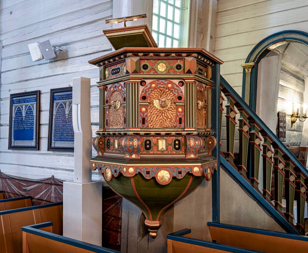 Step inside the church and get to know the history of this unique building. It starts already in the 13th century. The church is mentioned in a papal letter from 1292 as Ecclesia sancte Marie de Eikundasund. At the beginning of the 17th century, the condition of the building was such that it had to be demolished and a new church was built on the same site. Since then, the church has been remodelled, extended and renovated, and therefore has exciting stylistic elements from several eras.