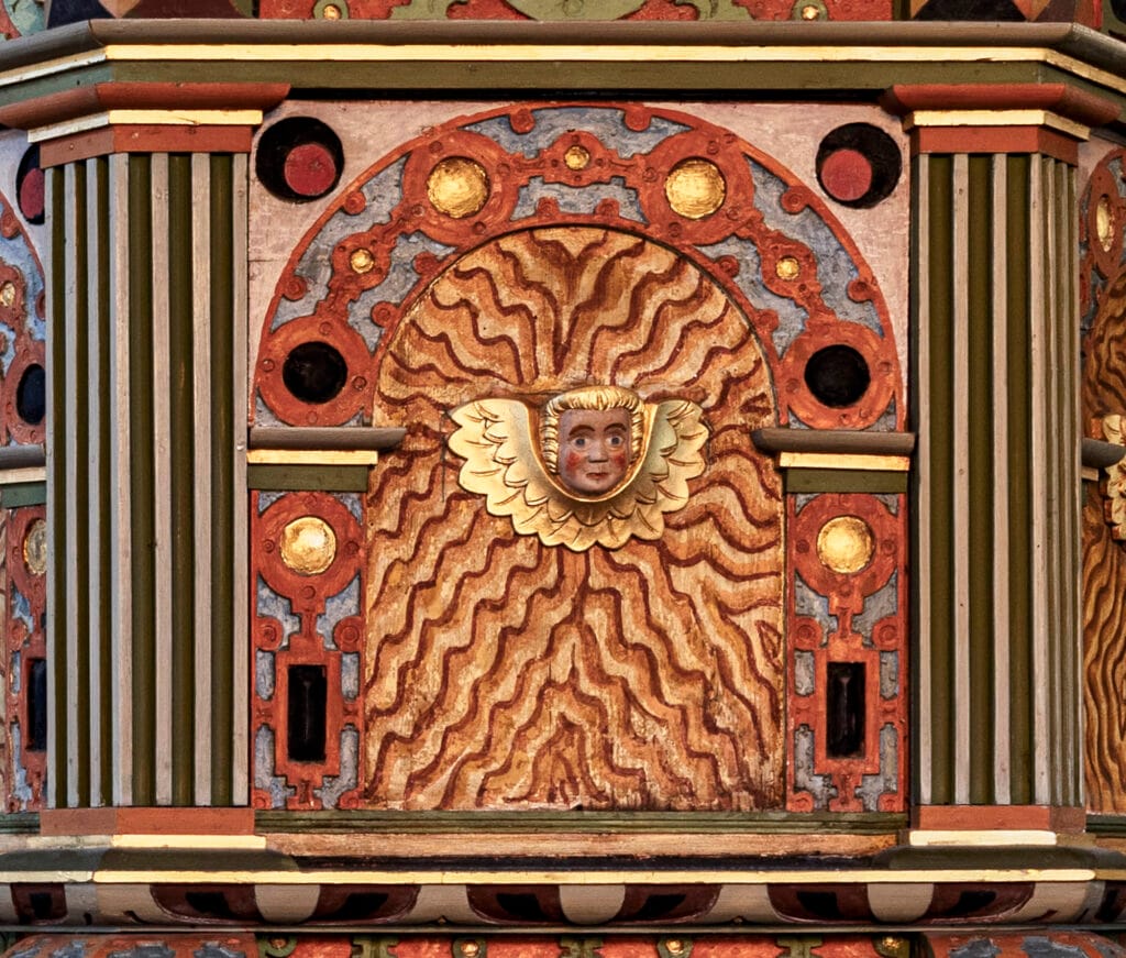 See and hear the story of the beautiful altarpiece from 1607, the baroque pulpit and the richly decorated pew doors. Hear about the king who sold the church to private individuals, about the king who wanted to bring the pew doors to Sweden - and about the Danish ship's crew who presented the church with a beautiful silver jug as a thank you for saving them from distress at sea.