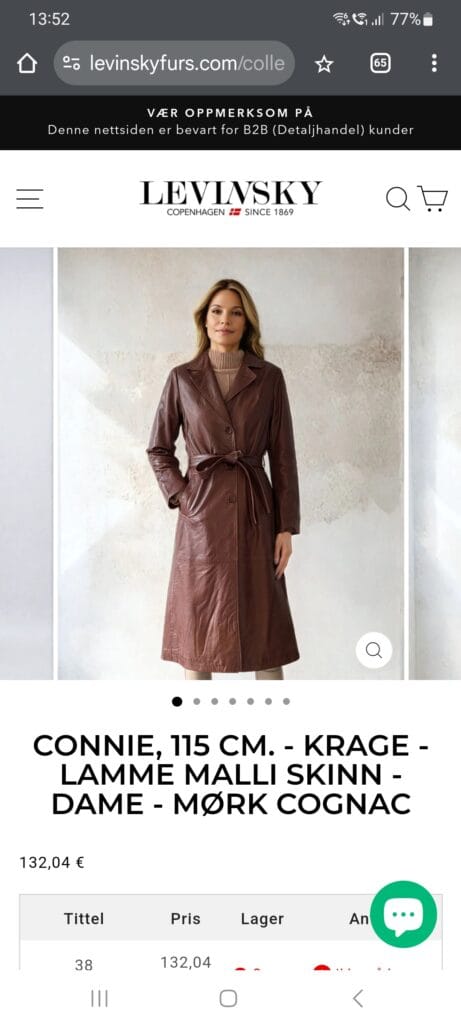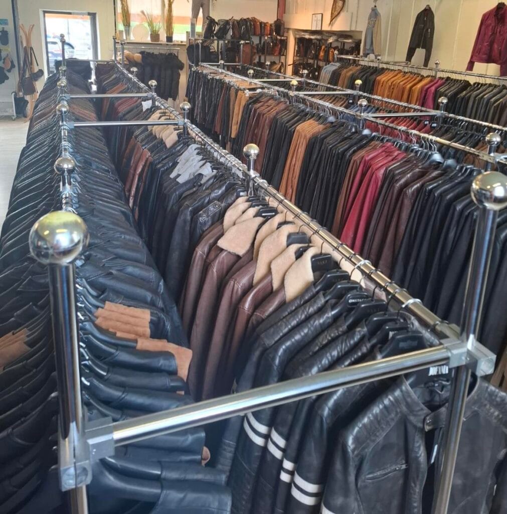 Sale of leather clothing & leather goods. You will find us in the same building as the petrol station YX. Like vE-39