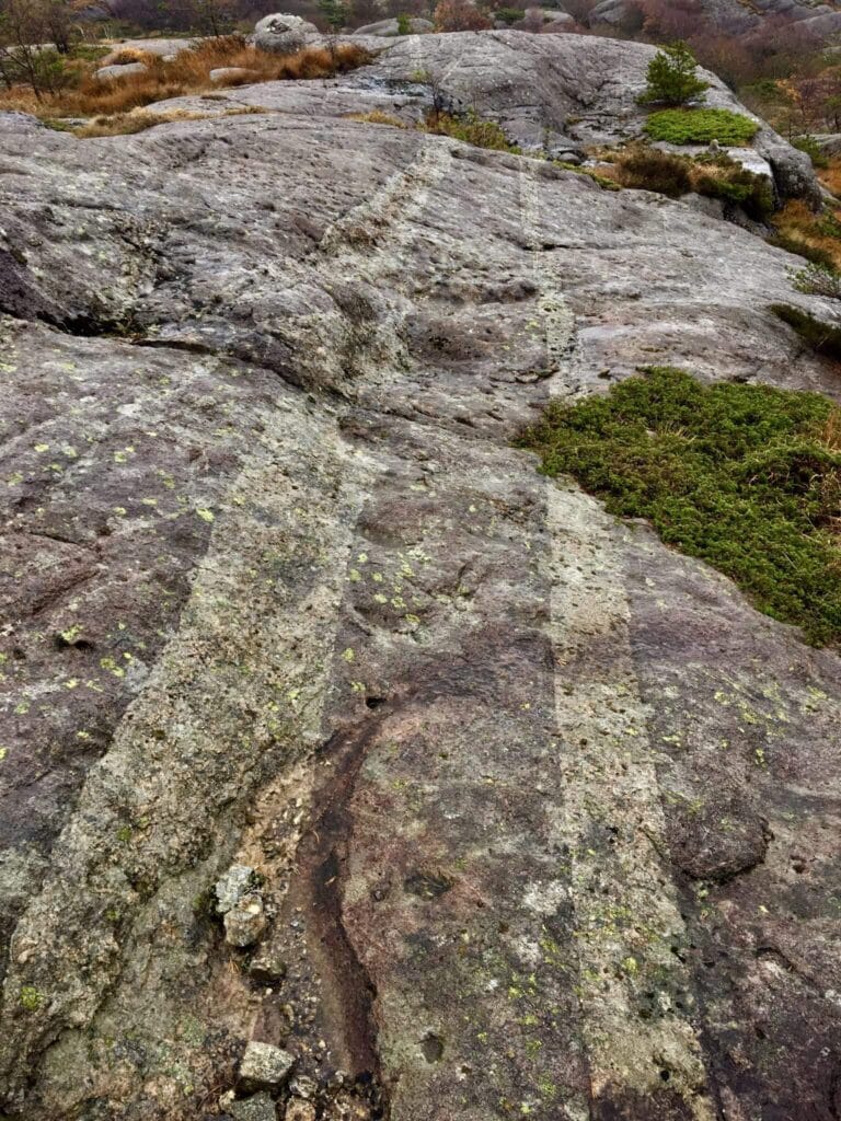 There are a total of 11 parallel basalt passages in the ESE-WNW direction. These can be found in several places in the geopark, but they are easily accessible in Mong, Tengs, Gaudland, Koldal and Tellenes.