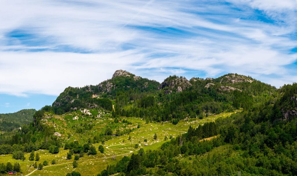 Coming from the south on the E39, turn right at the main exit to Moi. Here you will now have Mega right in front of you, turn left, follow the road straight ahead to the top of the hill, turn right here into Øvre Hauklandsvei. Follow the road to the end. Just before the last farm, there is a forest road to the left and here you go up. You can park along the road where the forest road starts, but be careful not to block other traffic.