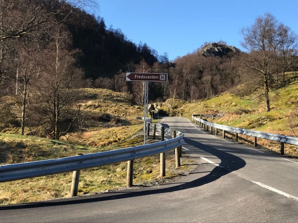 The hike up to Fredsvarden is 0.6 kilometres long. It is a moderately difficult hike with a climb of approximately 200 metres. The hike is well marked and there are several places where you can stop to rest and enjoy the view.