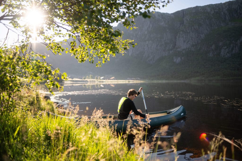 In the summer, you can paddle a canoe, try SUP, go on walks and mountain hikes, or fish and swim in the popular Grøttelandsfossen.