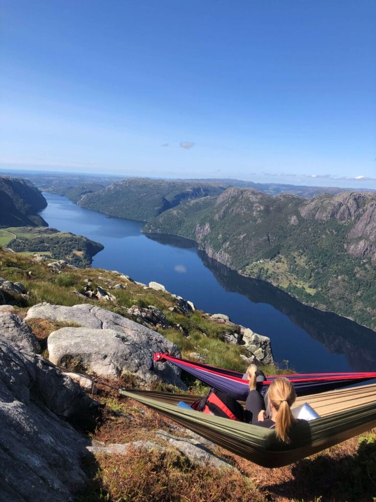 At one of the outermost viewing points, mounts have been drilled into the rock for as many as 37 hammocks with a view of Ørsdalsvatnet. The hammock attachments are free to use.