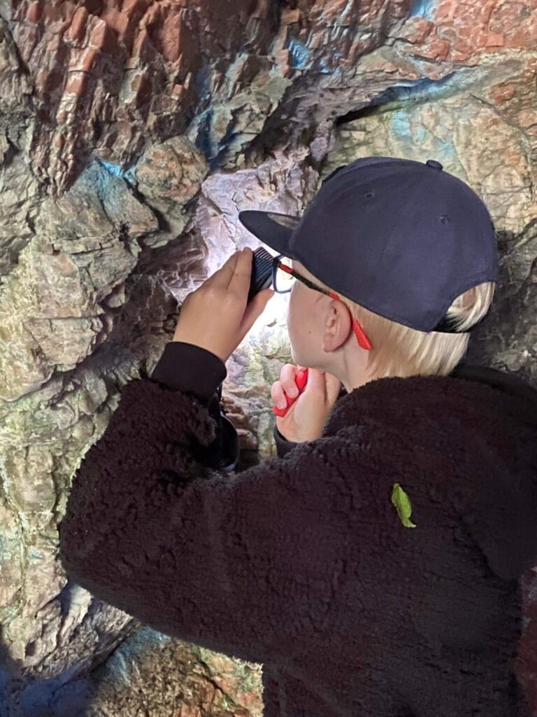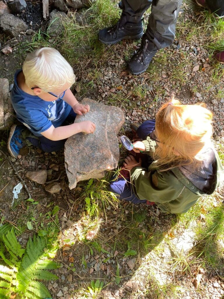 The mines are part of a pegmatite dyke. Pegmatite is a very coarse-grained rock that is usually formed by crystallisation of residual solutions of magma. This residual solution may contain some water and many different exciting minerals can be formed. Metre-sized crystals can be found in pegmatites. On Hidra, feldspar and quartz were in several places completely visible in the day in coarse-grained passages called pegmatite passages.