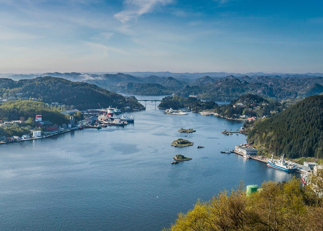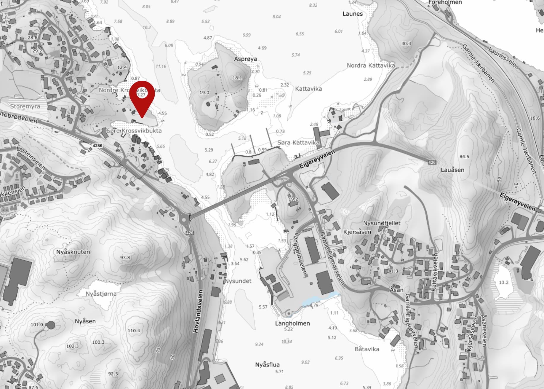 Idet du passerer Eigerøy bru på vei ut Norda Sundet med båt, dukker Krossnes og Krossvik opp på babord side.