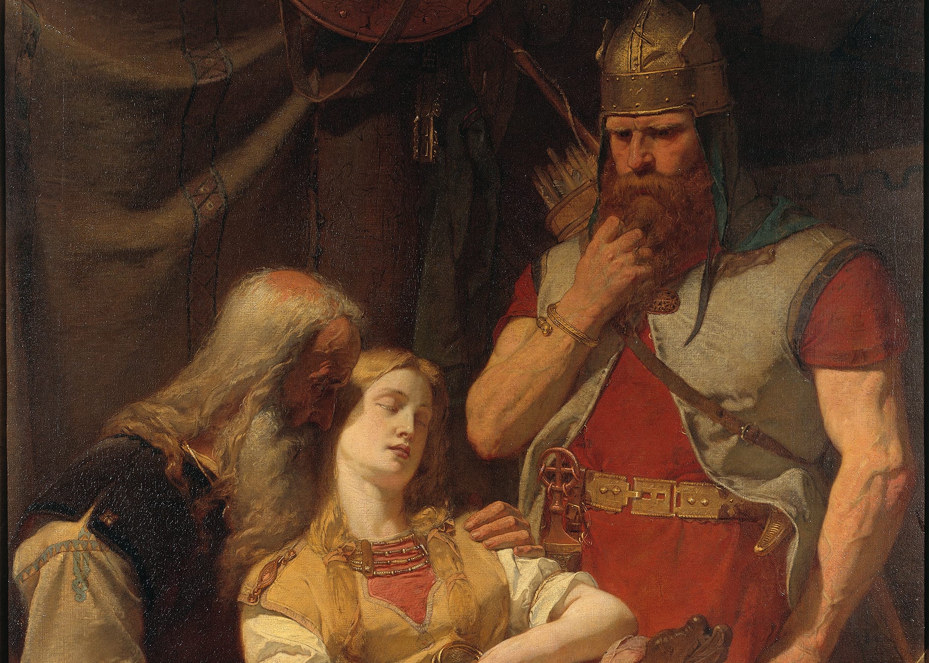 Hjalmars avsked av Orvar Odd efter striden på Samsö (1866) av Mårten Winge.