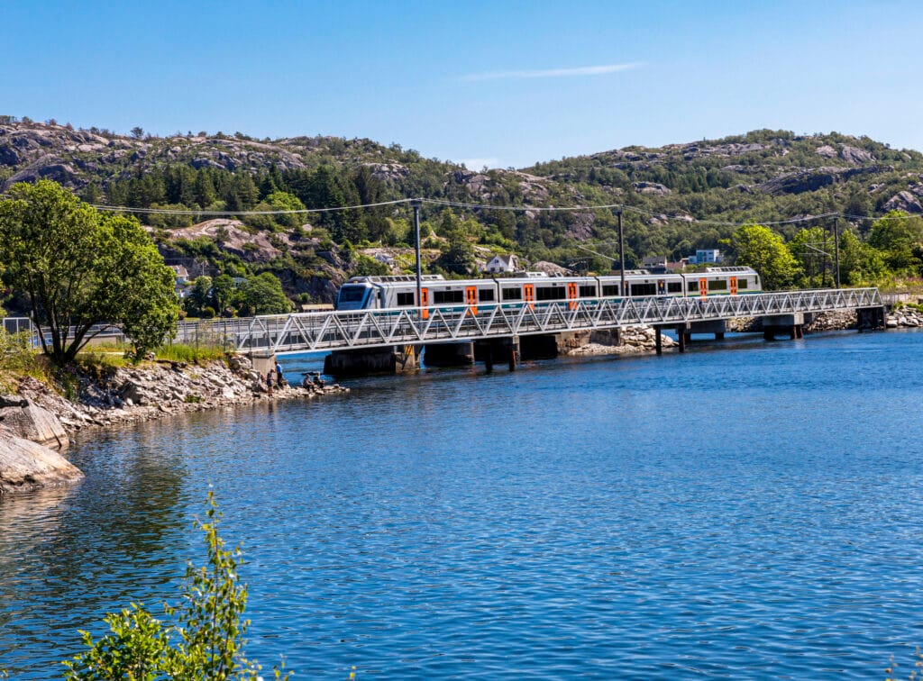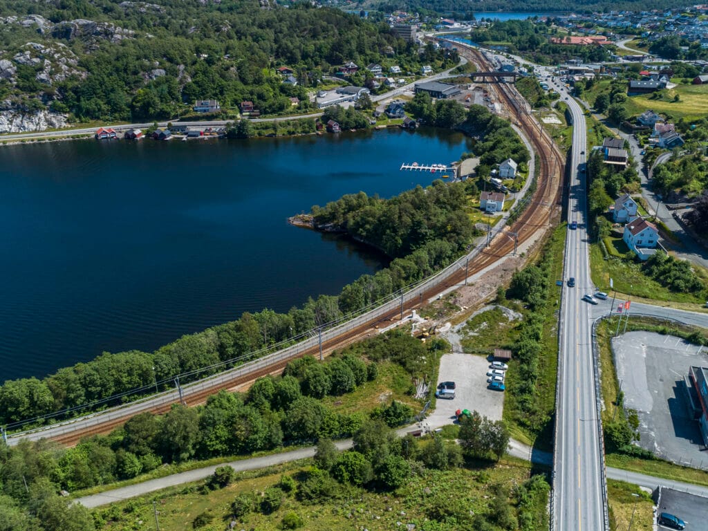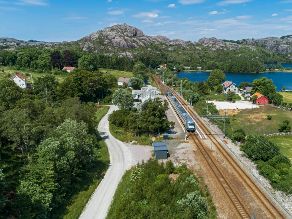 I perioden 1874-1878 ble Jærbanen mellom Stavanger og Egersund anlagt. Gjennom det kuperte terrenget mellom Hellvik og Egersund buktet den smalspora banen seg frem mellom knauser og tjern, inntil den ble omlagt i forbindelse med etablering av Sørlandsbanen. Overgang til normalspor og strengere krav til banens kurvaturer førte til at det måtte bygges en helt ny linjetrase mellom Hellvik og Launessundet. Etter at Sørlandsbanen ble åpnet i 1944 ble nesten hele den gamle jernbanetraseen liggende ubrukt og forfalle i over 40 år.