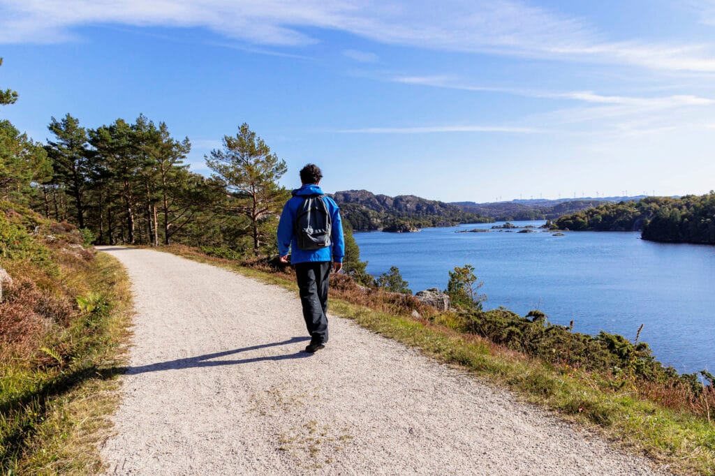 En unik tur til fots eller sykkel, med gode fiskeplasser ved sjøen, idylliske bade- og fiskevann, knauser og fjell med flott utsikt over kysten og mye mer.