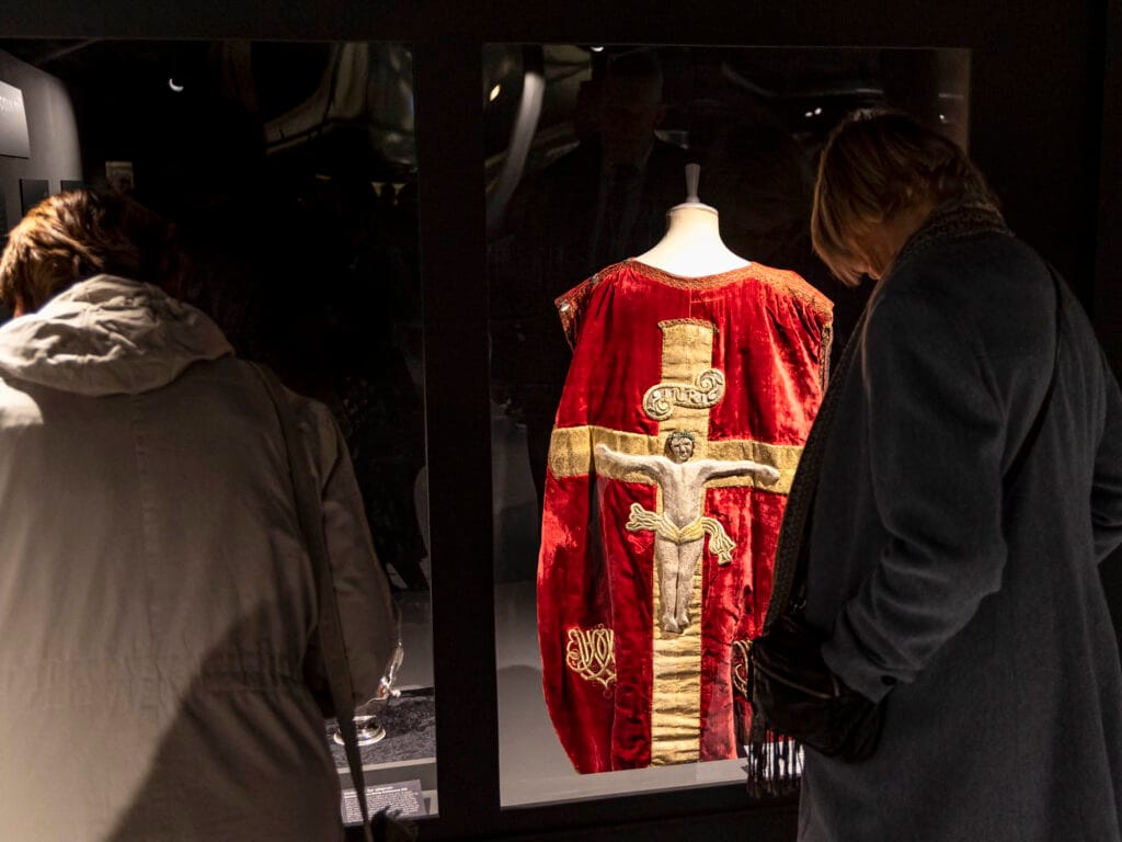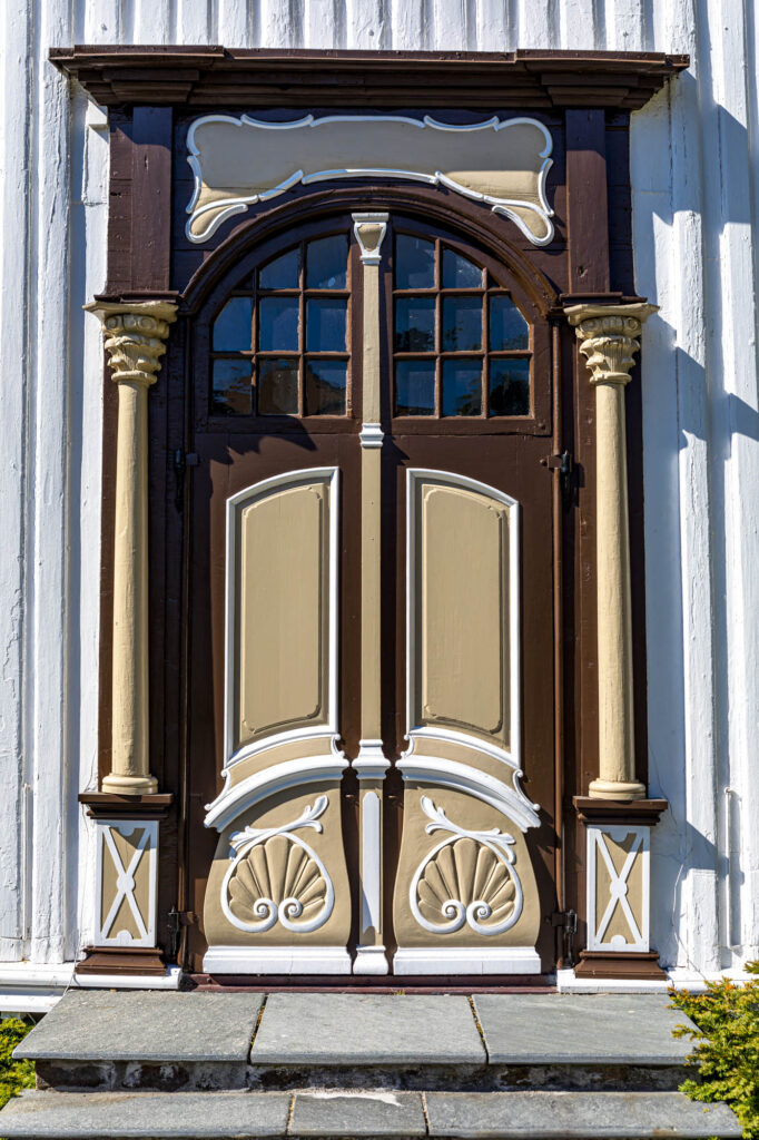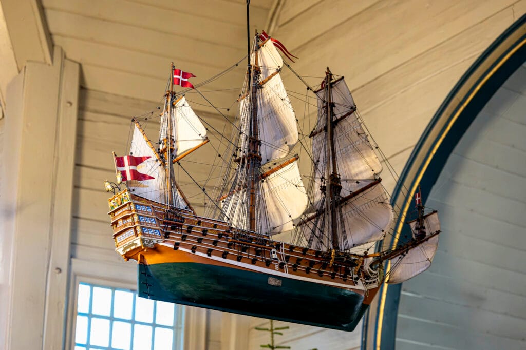 Se og hør historien om den vakre altertavlen fra 1607, den barokke prekestolen og de rikt dekorerte benkedørene. Hør om kongen som solgte kirken til private, om kongen som ville hente benkedørene til Sverige – og om det danske skipsmannskapet som forærte kirken en vakker sølvkanne som takk for at de ble reddet fra havsnød.
