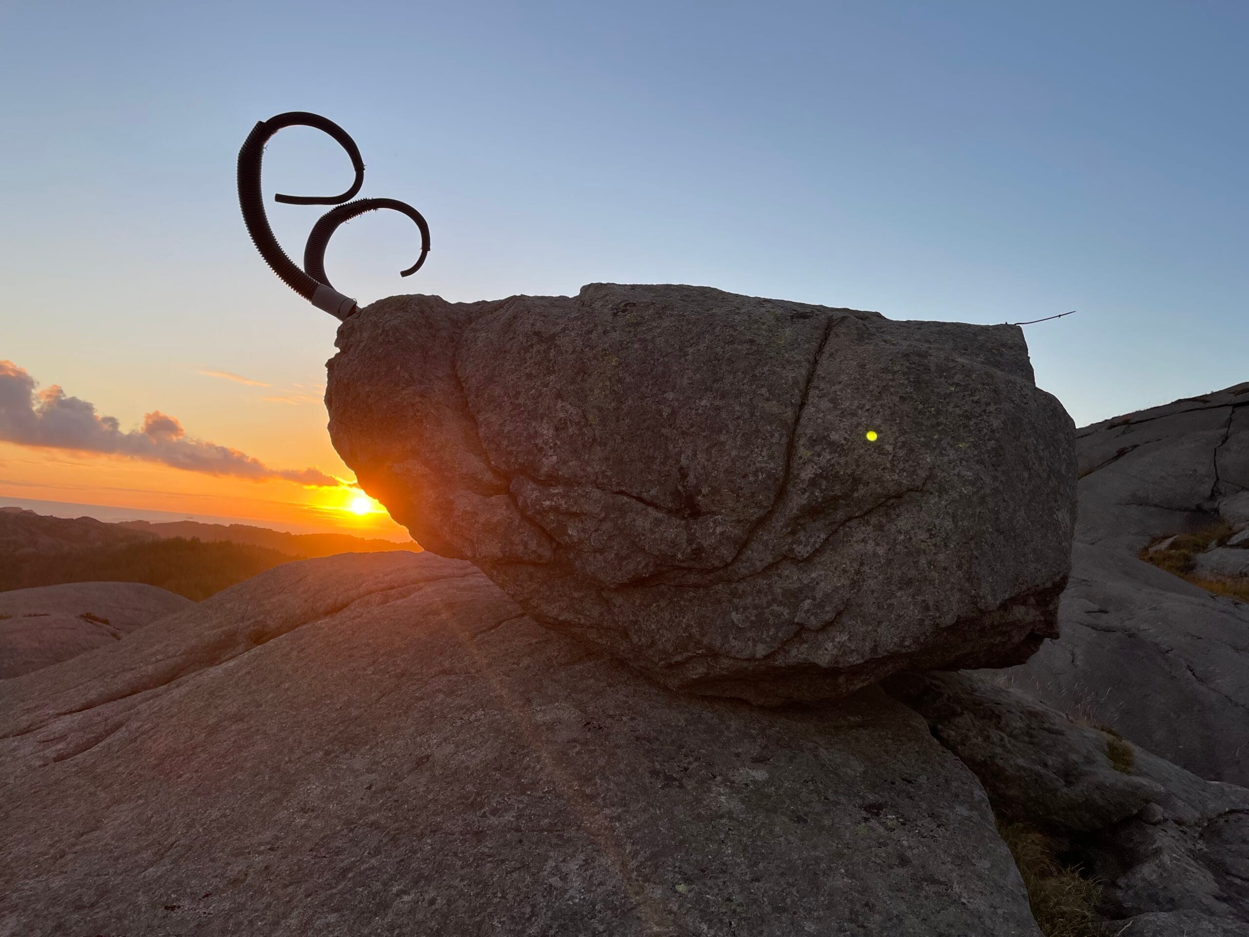 På vei oppover får du raskt noen høydemeter, akkurat nok til at barna får følelsen av ekte topptur. Etter en kort stigning dukker Hellvik Geita opp – en unik steinformasjon som noen kreative sjeler har gitt både horn og hale. Resultatet er en morsom og sjarmerende «geit» som står strategisk plassert og speider utover terrenget.