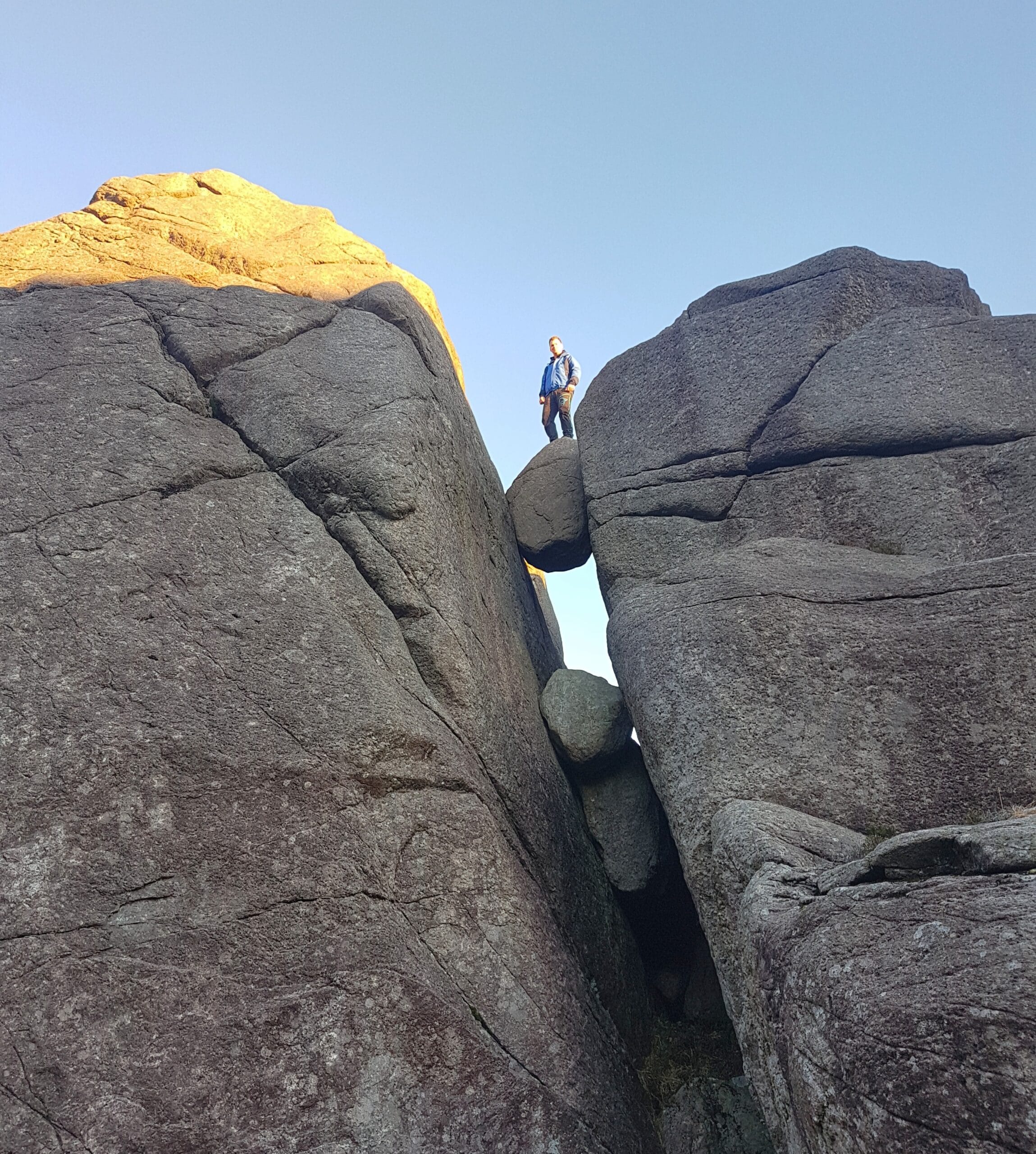 Hellviksbolten er en stor steinblokk som sitter fastklemt mellom to fjellvegger – en naturlig miniutgave av Kjeragbolten.