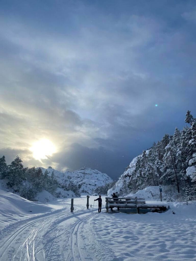 Lysløypa går gjennom et idyllisk landskap med skog, vann og fjell – både på sommer og vinter.