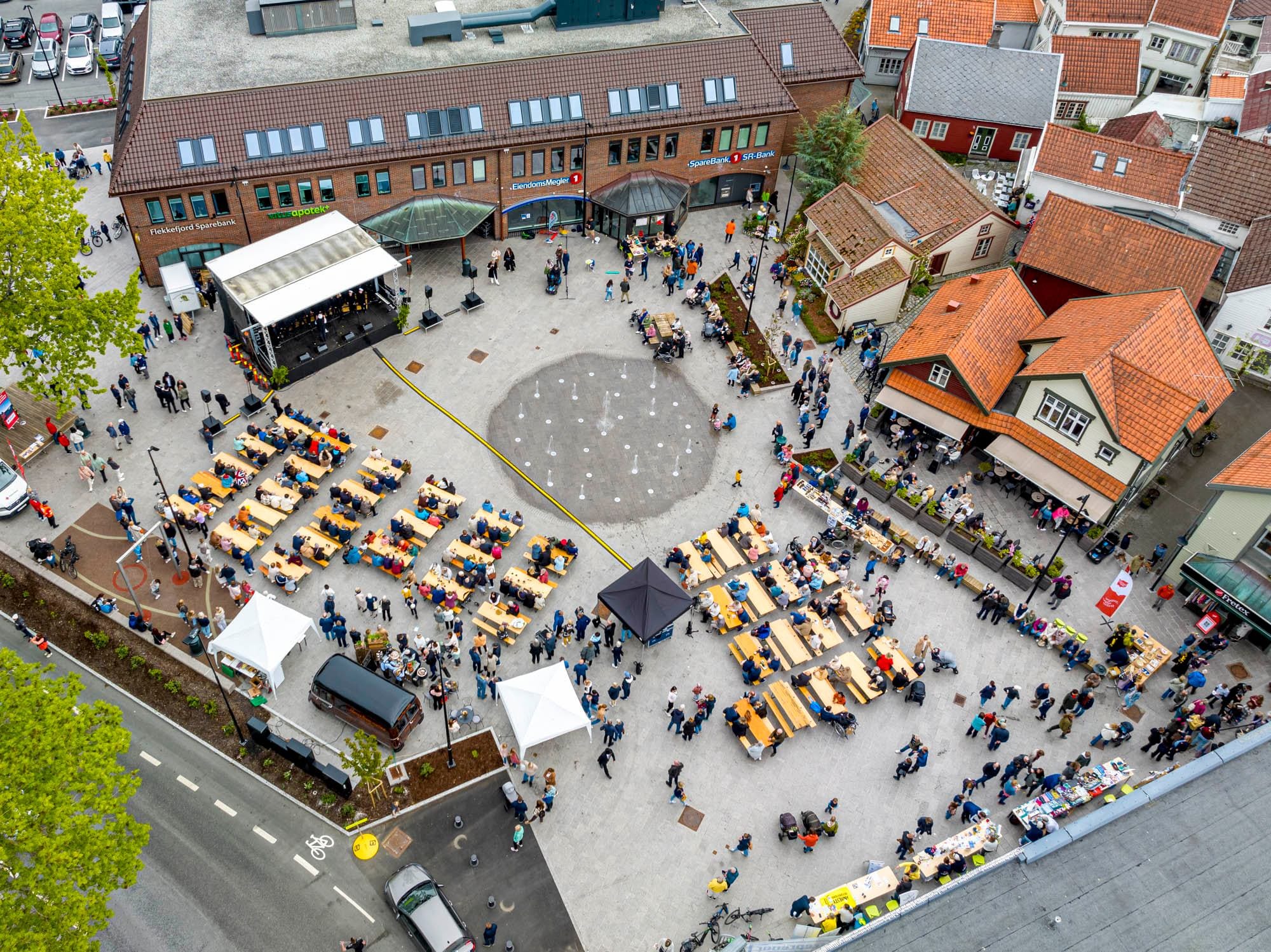 Da torget i Egersund ble fornyet i 2023, var målet å skape mer enn et nytt byrom. Resultatet ble et levende hjerte for byen – et sted for både fest og fellesskap, hverdagsliv og opplevelser. Her kan du rusle over månestein, møte venner på kafeene rundt, nyte god mat på byens restauranter, og delta i kulturelle arrangementer gjennom hele året.