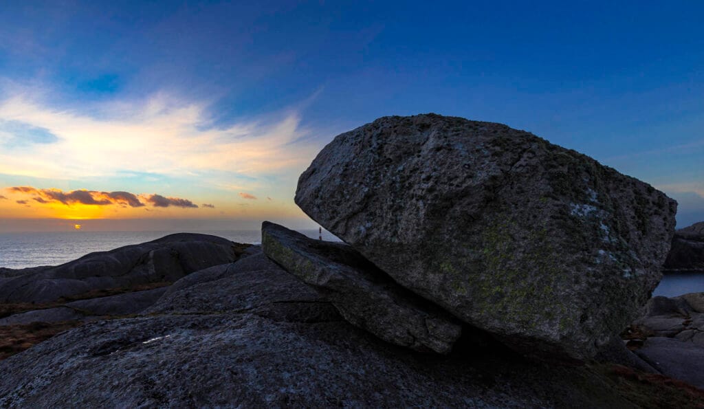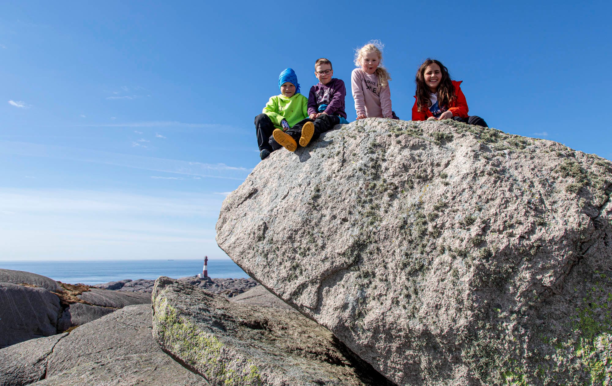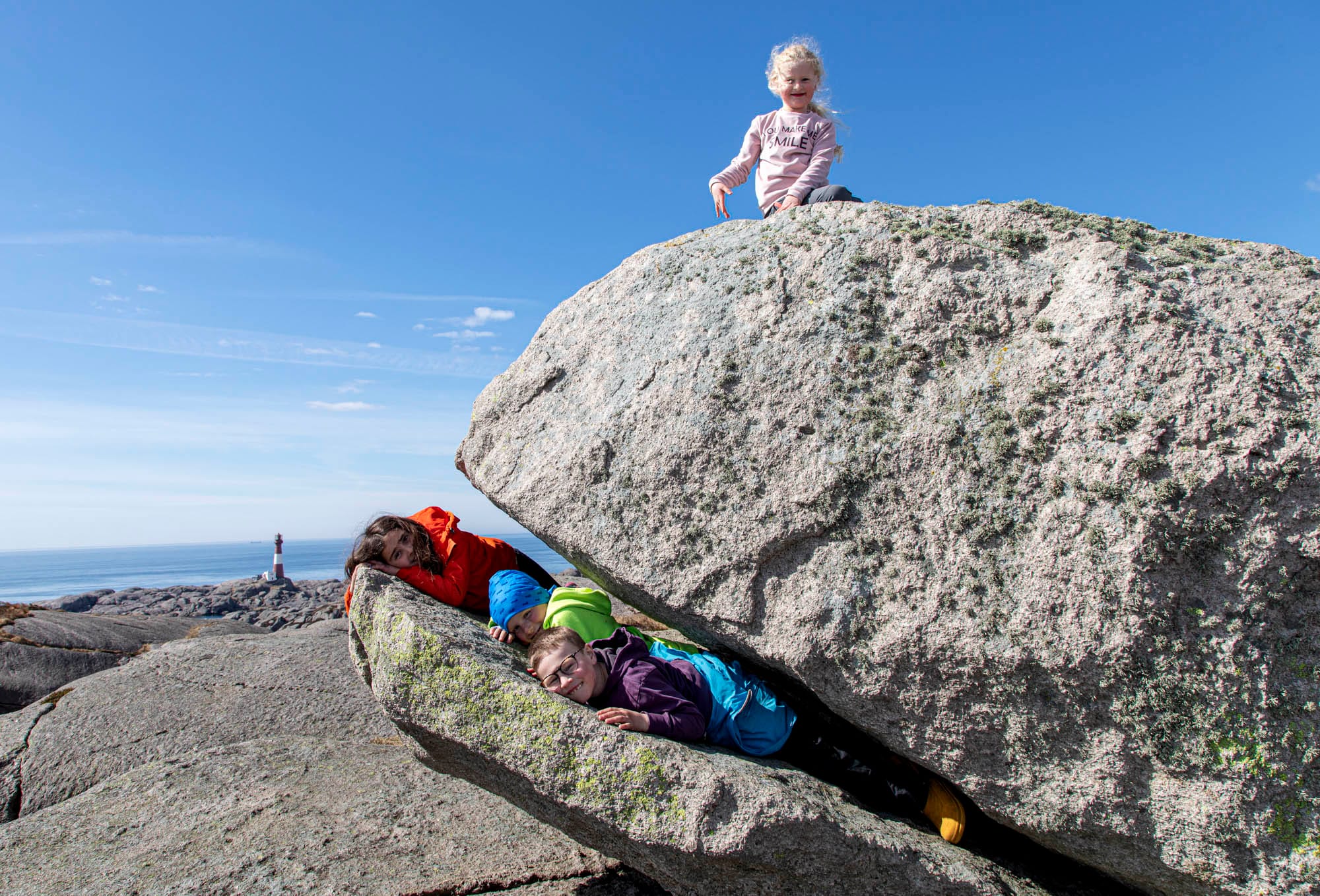 På nordre Eigerøy, omgitt av lynghei, svaberg og frisk havluft, ligger en av de mest sjarmerende og familievennlige småtoppene i området: den karakteristiske steinformasjonen som både barn og voksne har gitt et forbløffende antall kallenavn. Her møter vi PacMan, Habnafjedle, Steinbiten, Kvalen, Hvalkjeften – en og samme stein, men sett med mange ulike øyne!