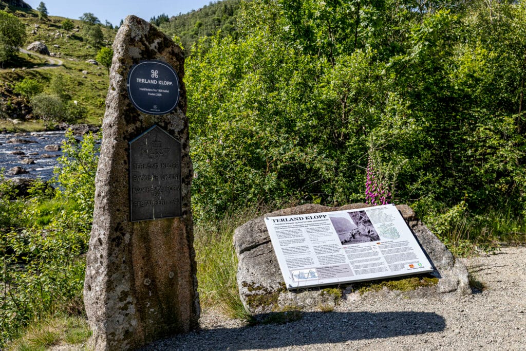 Terland Klopp krysser elven Gyaåne i Gyadalen bare noen kilometer fra Helleland og er lett tilgjengelig. Det er mulig å gå eller sykle over broen.